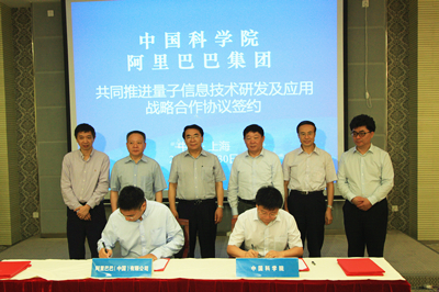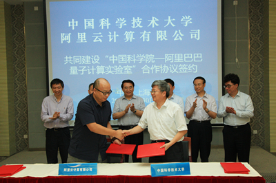 在白春礼、艾宝俊、沈晓明、万立骏、王坚、曹振全、潘建伟的共同见证下,中科院办公厅主任汪克强与阿里巴巴集团首席风险官刘振飞签署了中科院与阿里巴巴集团共同推动量子信息技术研发及应用的战略合作协议;中国科大副校长朱长飞与上海市张江高新技术产业开发区管理委员会副主任侯劲签署了中国科大与上海市张江高新技术产业开发区战略合作框架协议;朱长飞与阿里云飞天技术部总经理李津签署了共同建设中科院-阿里巴巴量子计算实验室合作协议。