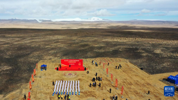 9月20日,望远镜工程建设启动会现场(无人机照片,新华社记者 陈杰 摄)