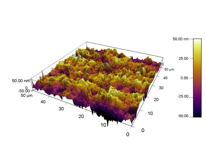 图2.中国科学院金属研究所制备基带的表面粗糙度(AFM标准50×50um)Ra=19nm