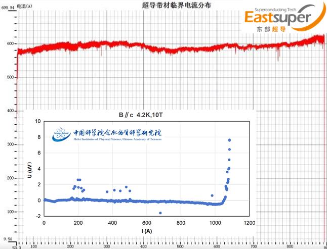 图3.东部超导制备的千米级高性能REBCO带材长度方向Ic均匀性及低温磁场下性能