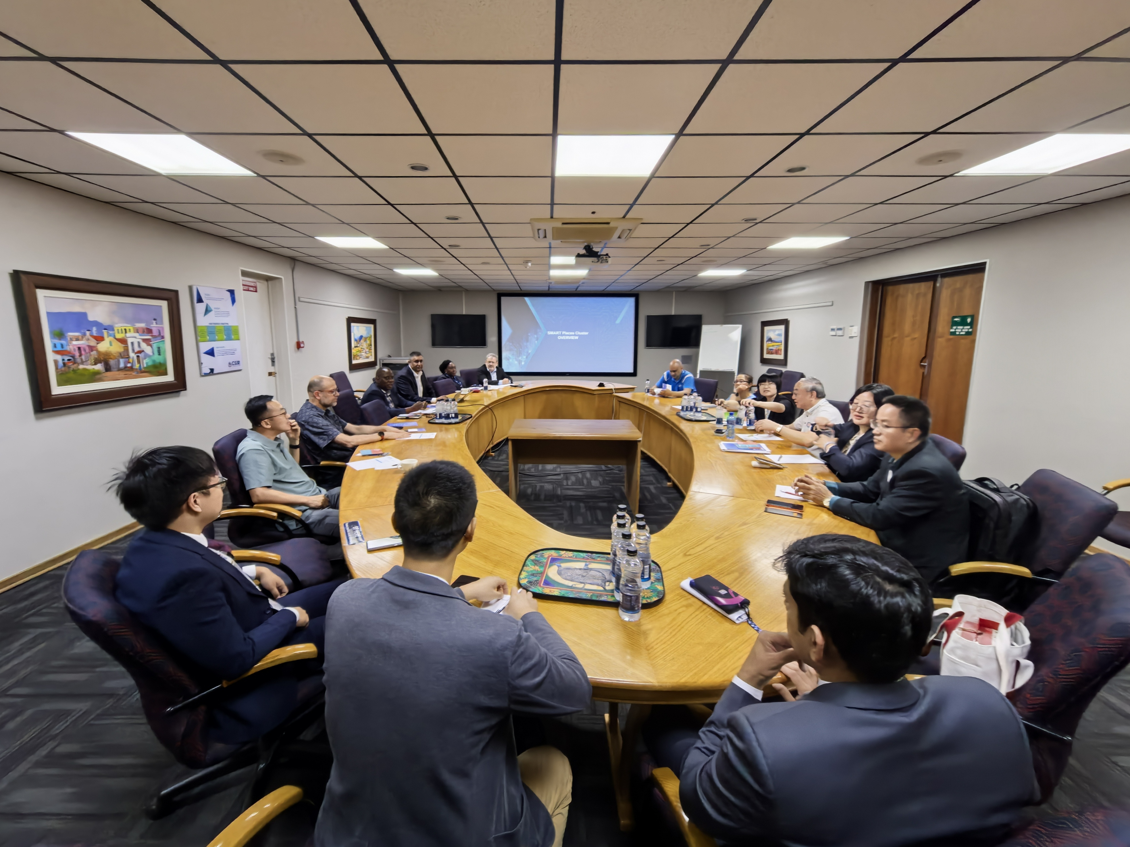 代表团参观了CSIR SMART Places研究集群。双方就各自研究重点与优势展开深入交流,初步确定了多个具有合作潜力的方向,包括废弃物高值化利用、数据中心高效制冷、绿氢制备与应用、产品碳标签体系、新能源材料研发、热化学储能技术、可持续生物燃料及可持续港口发展等。在与CSIR首席执行官Thulani Dlamini博士的会谈中,双方一致同意继续保持密切沟通,推动人员互访与联合研发等实质性合作。