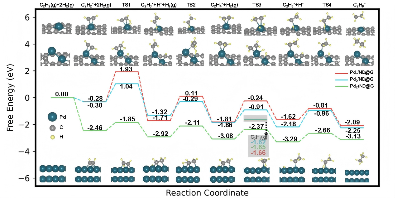 图4. Pd2/ND@G催化乙炔半加氢反应示意图
