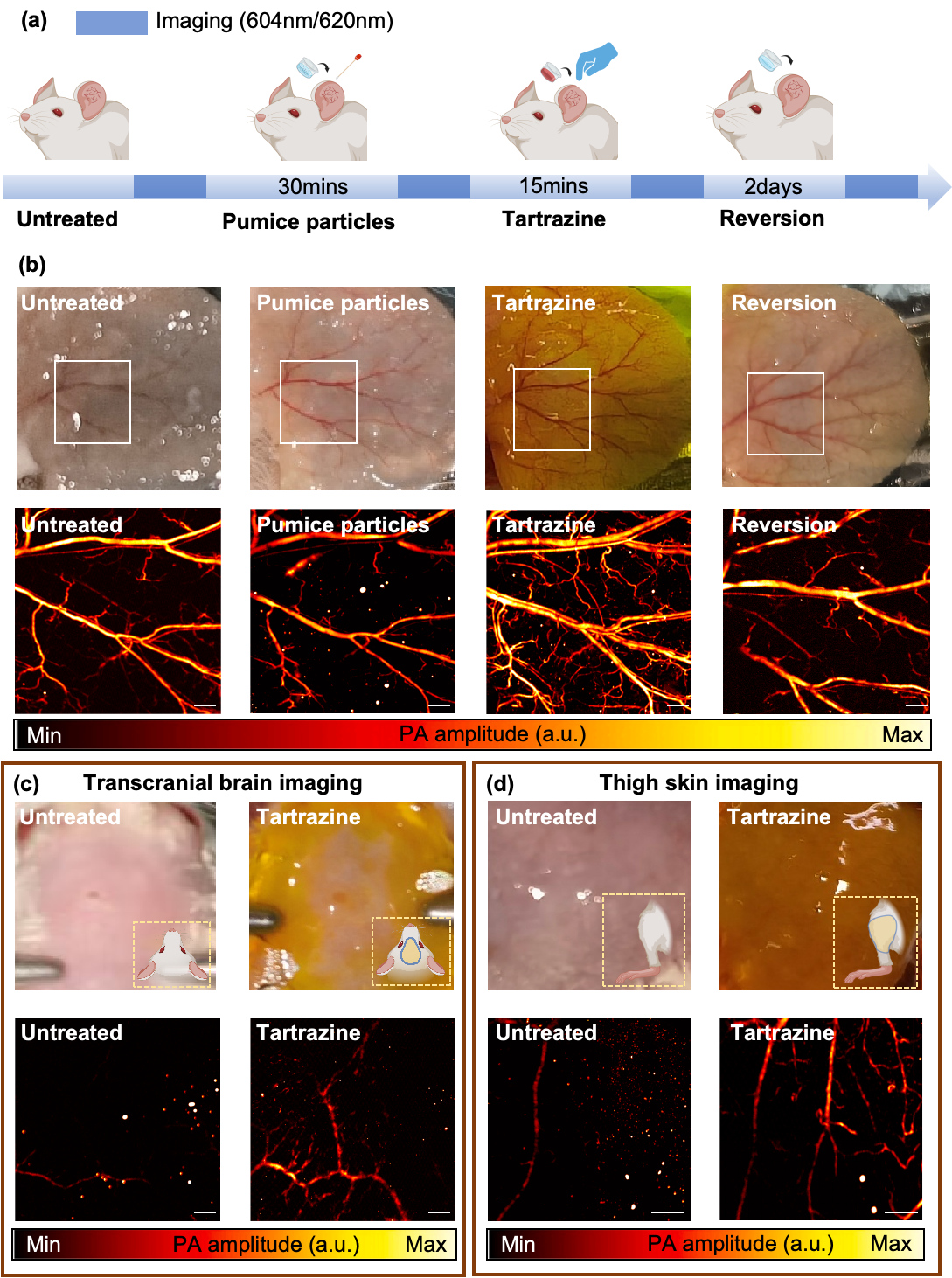 图 3. MW-OR-PAM活体组织可逆透明化无标记成像结果