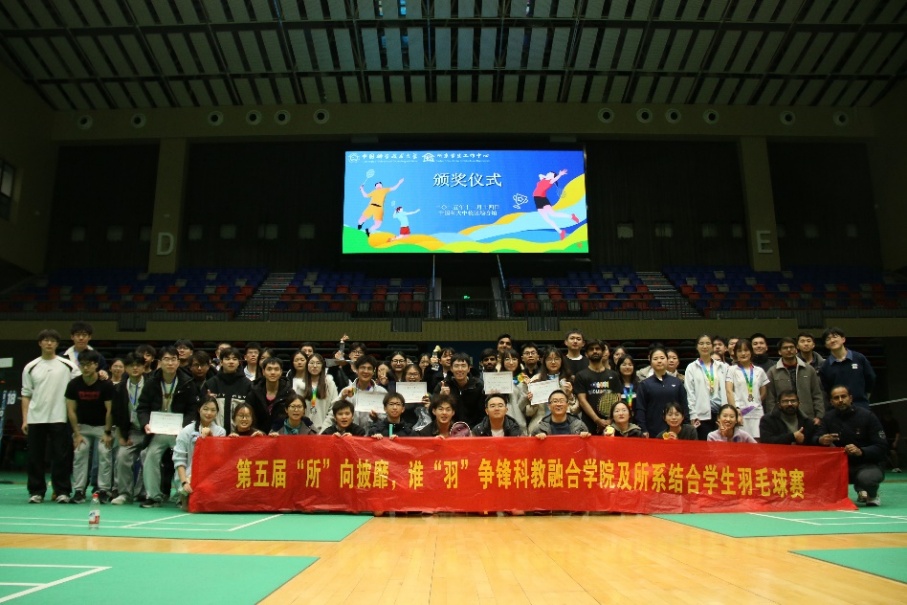 2025年12月14日,我校第五届“‘所’向披靡,谁‘羽’争锋”科教融合学院及所系结合师生羽毛球赛在热烈的气氛中圆满落下帷幕。本次比赛在研究生院与校团委的指导下,由校所系学生工作中心全程组织承办,吸引了来自20个所系单位的165名选手参与,充分展现了科教融合学院学子们团结协作、拼搏进取的精神风貌。