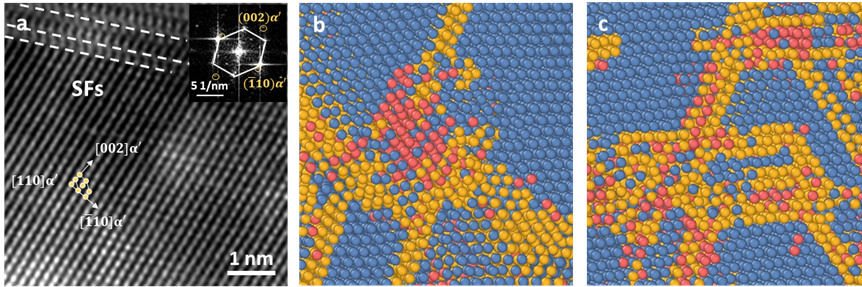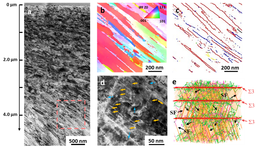 图3. GNS 304NG中高密度层错与辐照缺陷相互作用,发生自适应马氏体相变