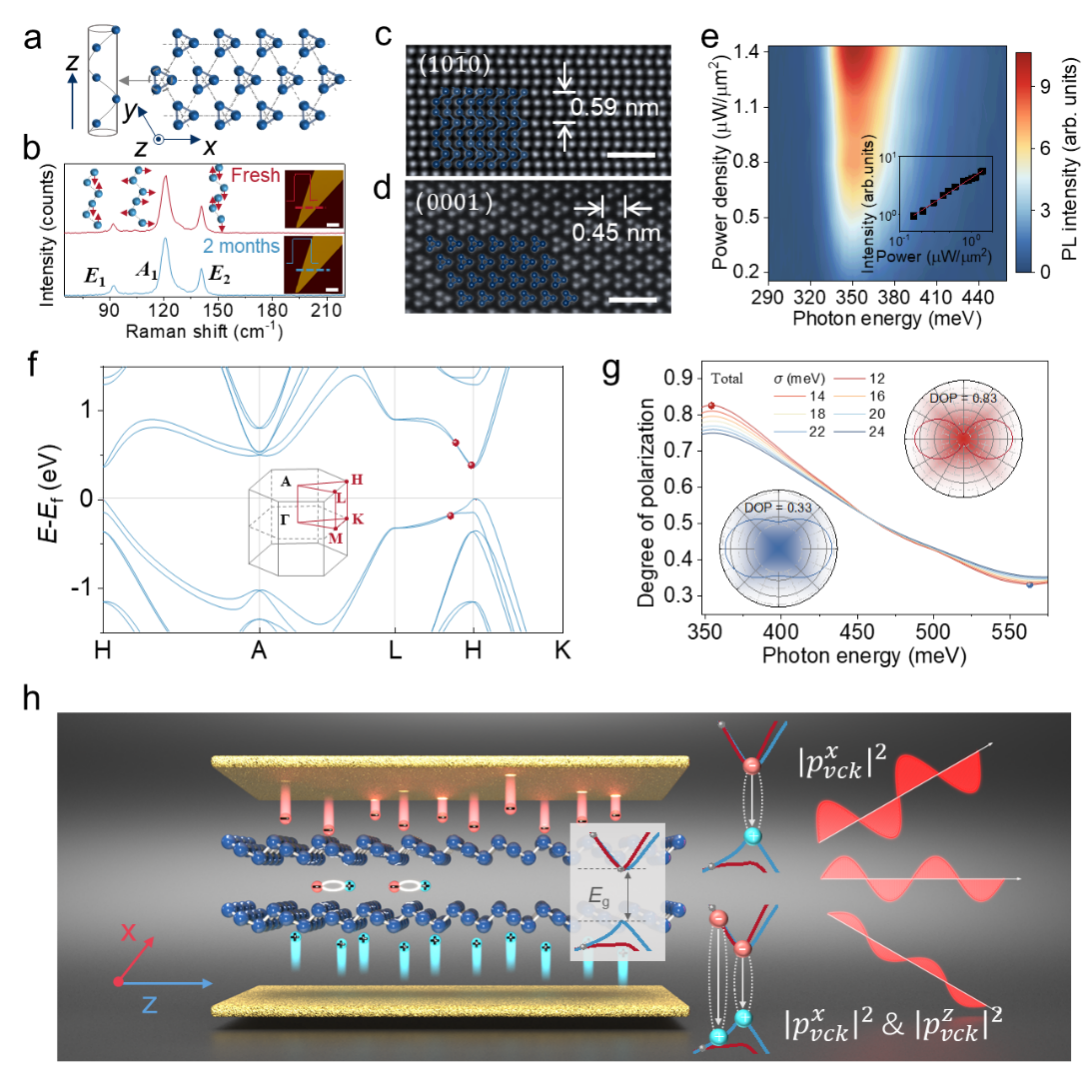 图2. 窄带隙二维半导体碲的偏振可调谐中红外发光器件