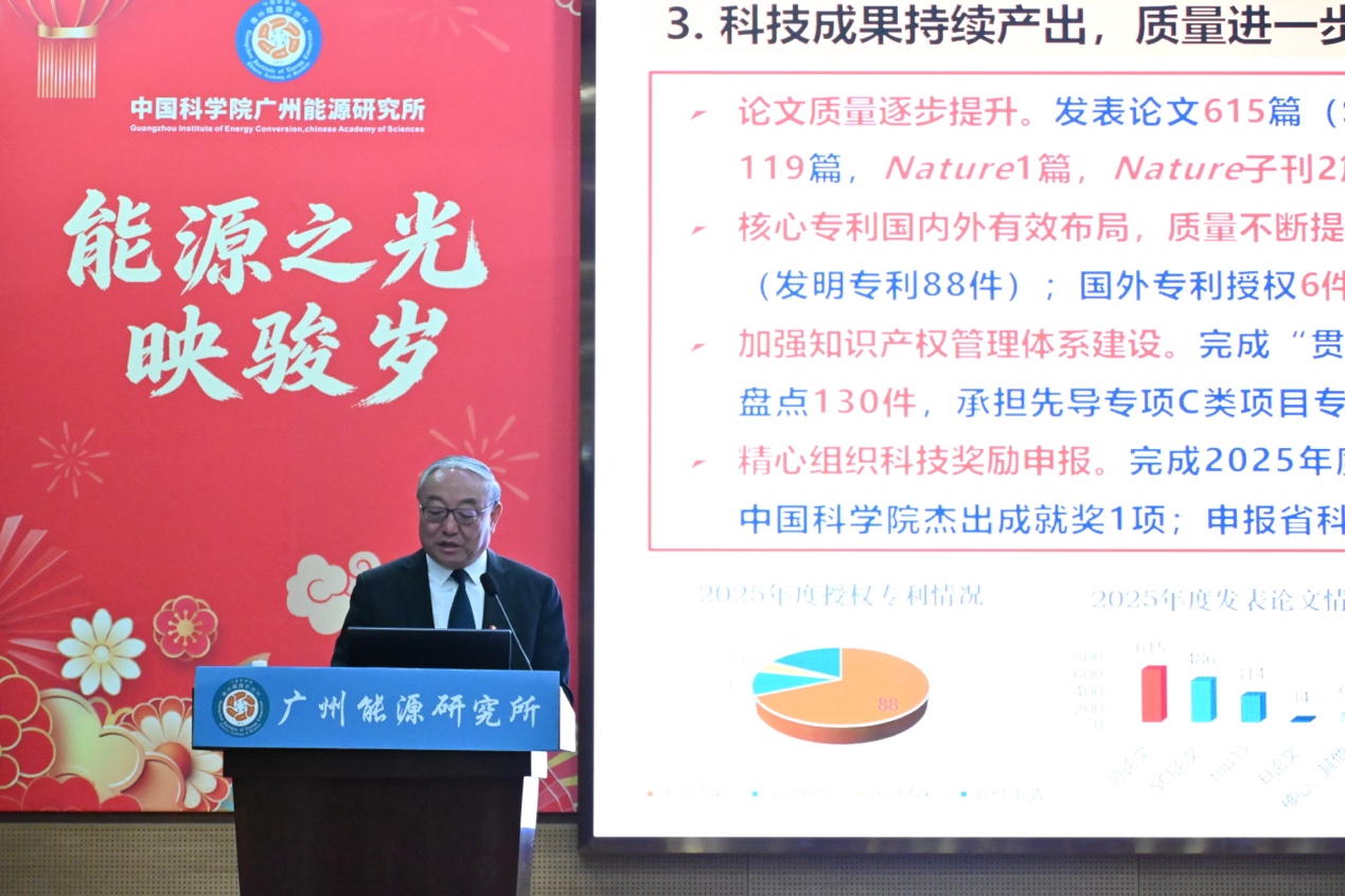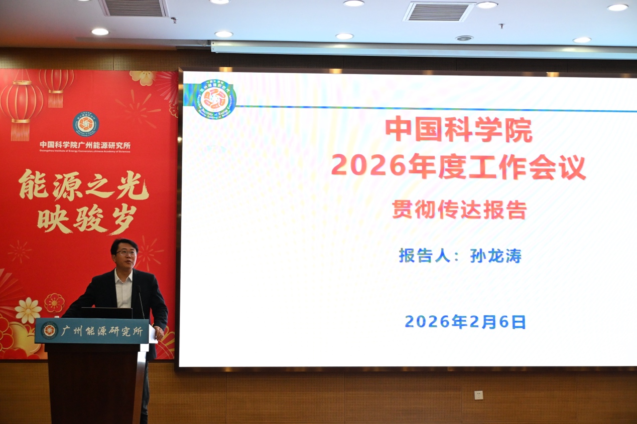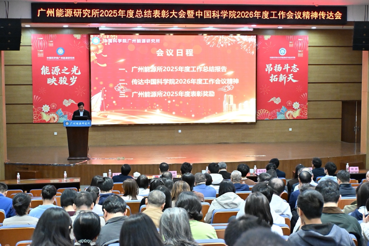 2月6日,广州能源所召开2025年度总结表彰大会暨中国科学院2026年度工作会议精神传达会。广州能源所所长吕建成,党委书记、副所长孙龙涛,党委副书记、纪委书记侯红明,副所长孙永明,学术副所长李小森及在所职工、研究生参加会议。侯红明主持会议。