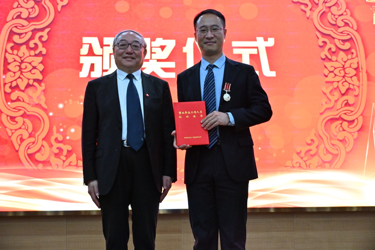 会上,孙永明宣读了研究所2025年度各项荣誉和获奖情况。吕建成为个人记功人员林文野颁发奖章和证书。李小森及双良节能系统股份有限公司人力资源总监李天明、双良集团碳中和中央研究院管理部经理俞波为“双良碳中和”奖学金获得者颁奖。