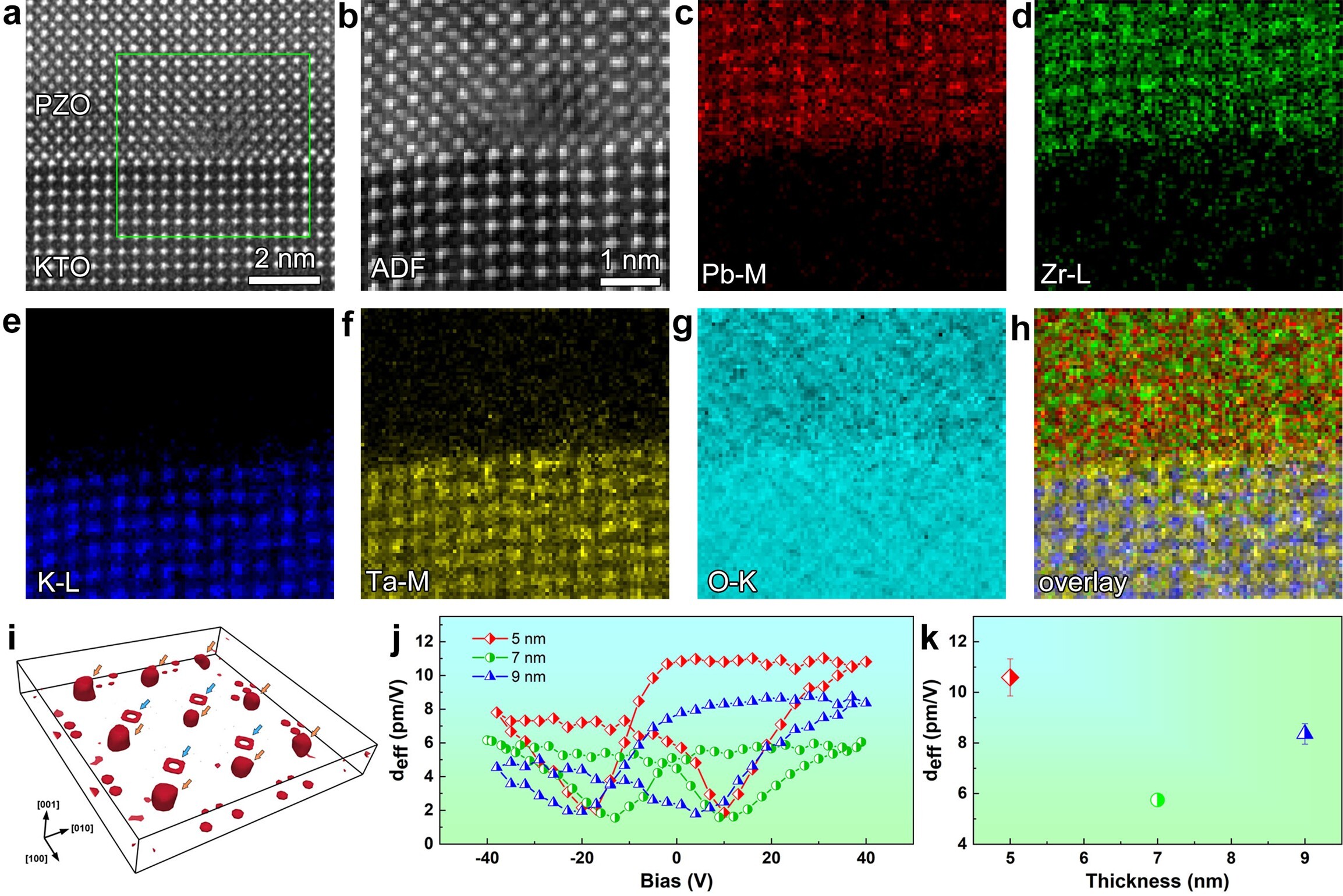 图2.界面位错核心原子、成分及薄膜压电性能表征