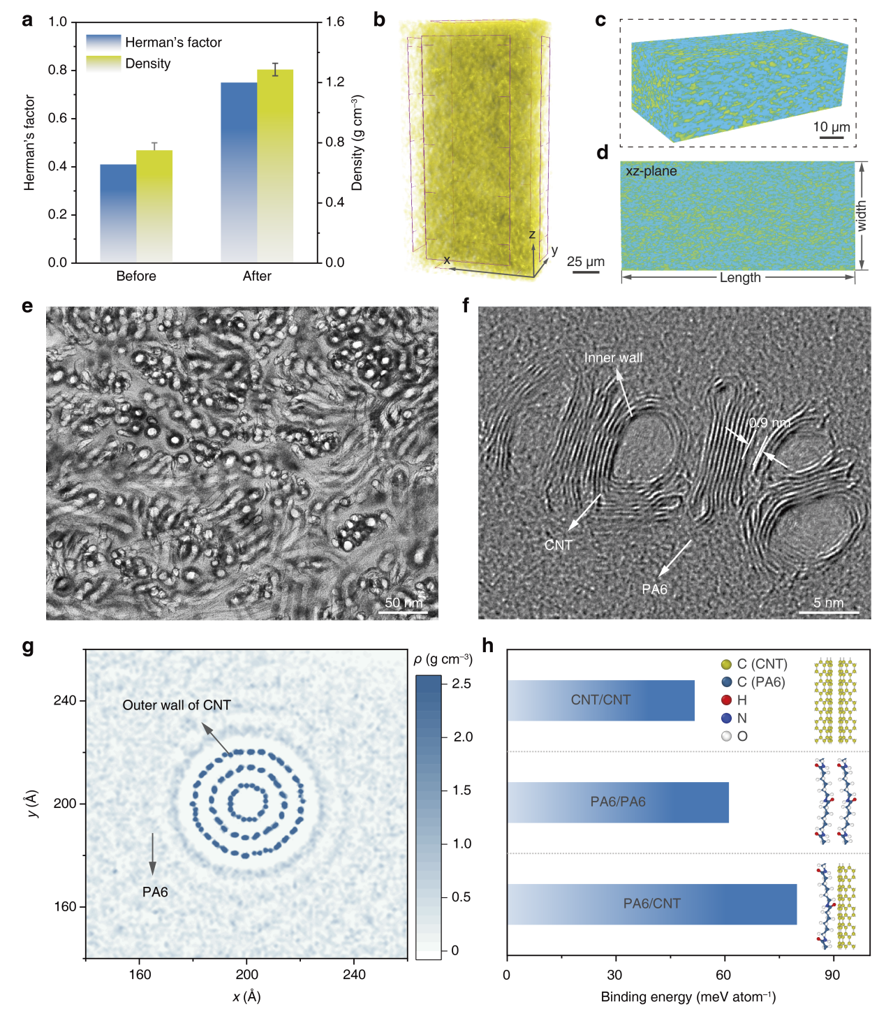 图2 碳纳米管超级塑料的微观结构与理论计算