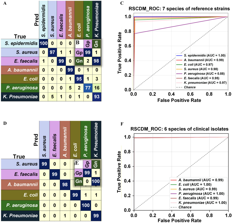 图3 拉曼光谱分类差异模型(RSCDM)在两种仪器采集病原菌拉曼光谱数据上的分类性能