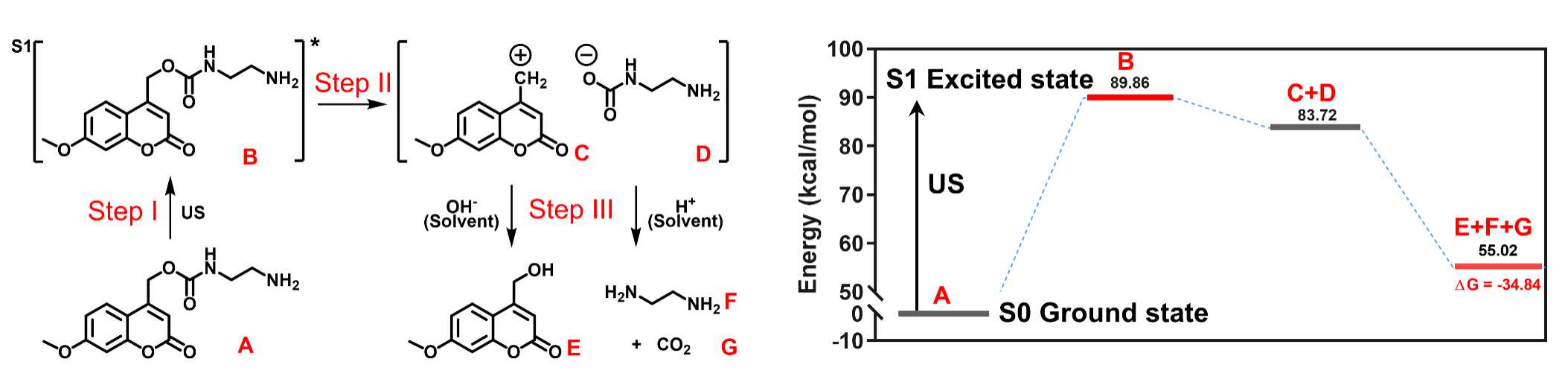 图2. 香豆素衍生的氨基甲酸酯键的超声裂解机制